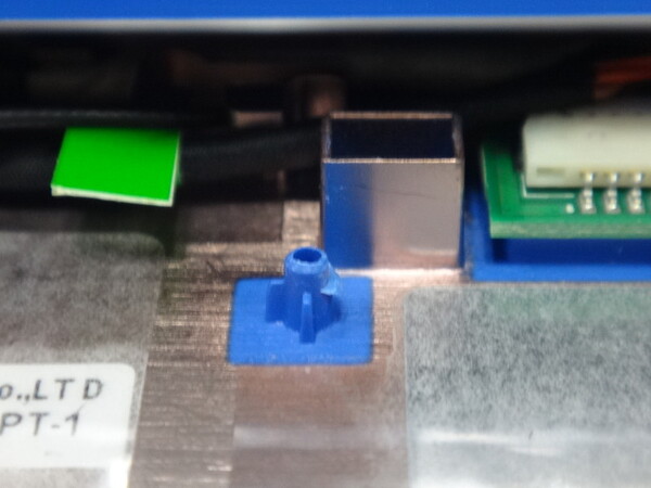 SSDが大きいせいで、どうしても青い出っ張りが邪魔になる。しかもこの部分は取り外しできるものではない。