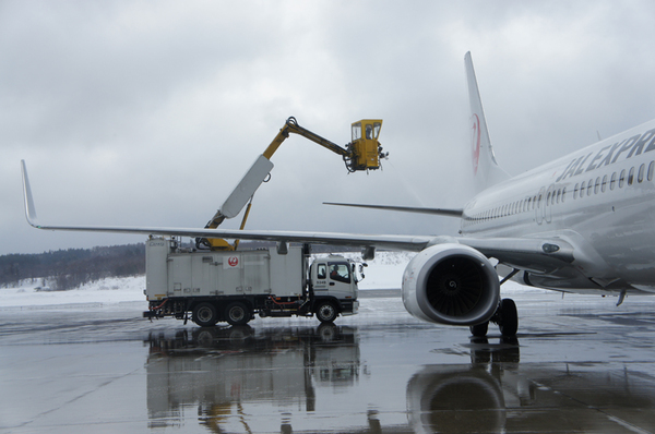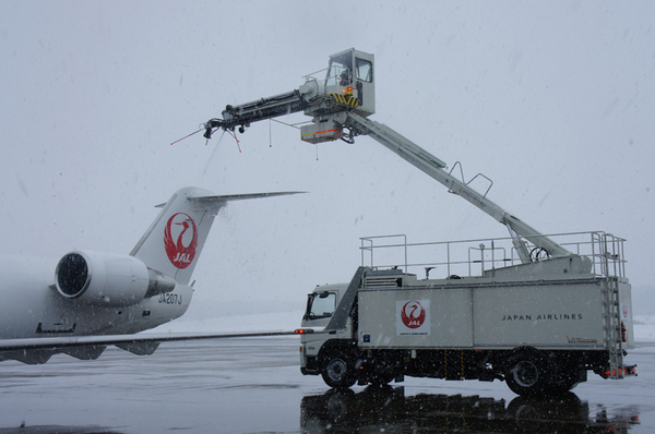 この除雪氷液は、間接的にかかる程度は問題ないが、窓にかけるとヒビ割れの原因になったり、エンジンにかけると機内の空調に影響がでてしまう。それを防ぐためには、高度な技術が必要となってくるので、JALの整備士は必ずディアイシングの資格を所有している。