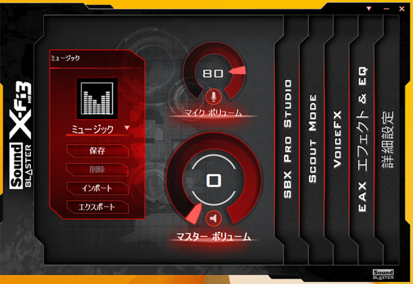 スピーカーはキーボード上に配置しており、ディスプレーに反射するのか正面から広がるようなサウンドを楽しむことができた。また、ユーテリティーソフト「Sound BLASTER X-Fi3」を搭載し、高周波や、低周波を調節する「CRYSTALIZER」やサラウンド効果、BASS効果などを%表示で微調整でき、自分の環境にあったサウンドを追求できる。4K解像度かつ正面から響く音を聴く迫力は、普通のノートパソコンではなかなか体験できないだろう。