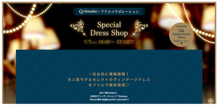 (株)Fablicは7日、フリマアプリ「フリル」で、ヴィンテージセレクトショップ「Grimier(グリモワール)」とコラボレーションした期間限定ショップ「Special Dress Shop」をオープンした。