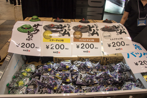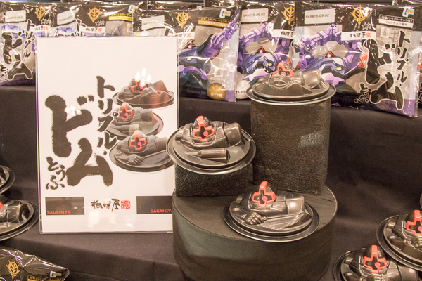 人気を博した「ザクとうふ」シリーズの新作「トリプルドムとうふ」の販売・試食会を実施。トリプルドムとうふは3種類あり、マッシュ機(ビターチョコ味)、ガイア機(マイルドチョコ味)、オルテガ機(ミルクチョコ味)だ