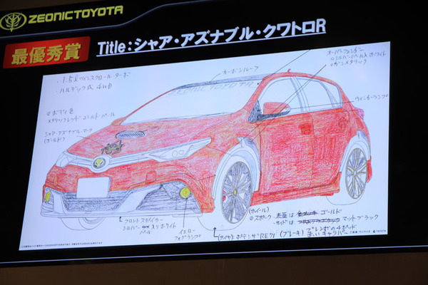 続いて行なわれたのは、「シャア専用オーリスⅡ エクステリアデザインコンテスト」の受賞作発表。市販バージョンの動向を占う上では必見の内容だ。