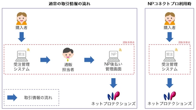 今回の提携で、「リピスト」「PRECS」を利用する通販事業者は「NP後払い」を利用する場合、「NP後払い」の利用に必要なデータ(取引情報、与信結果、配送伝票番号など)の送受信を自動化する有料オプションサービス「NPコネクトプロ」の利用(通常は初期導入20万円・月額運用費2万円が必要)が無料となる。「リピスト」ならびに「PRECS」の利用企業からの要望で今回の提携が実現した。