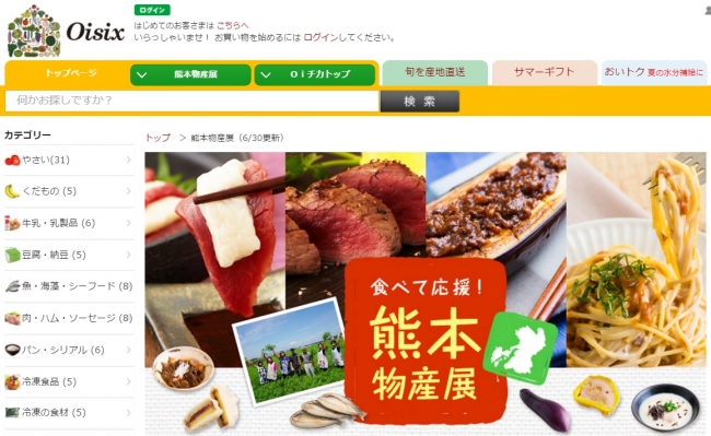 オイシックス(株)は6月30日、熊本地震の復興を支援するため、熊本の生産者が作るおいしい商品を特集した特設サイト「食べて応援!熊本物産展」をオープンした。