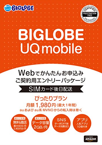 | 【Amazon.co.jp限定】BIGLOBE UQ mobile ぴったりプラン エントリーパッケージ au対応SIM データ通信/音声通話 / VEK52JYV |