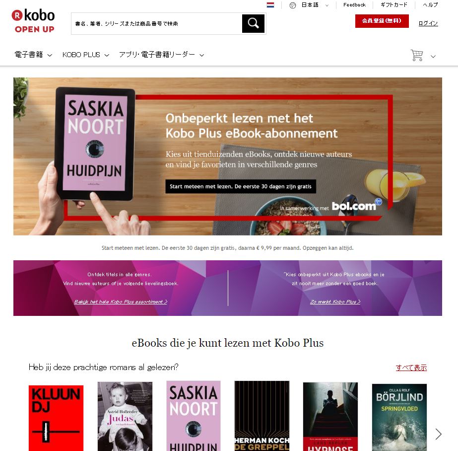 楽天(株)は23日、子会社のRakuten Kobo Inc.(本社:カナダ・トロント)が、オランダの大手ECモール「Bol.com」と共同で電子書籍が月額9.99ユーロで読み放題となる定額読み放題サービス「Kobo Plus」をオランダとベルギーで開始したと発表した。