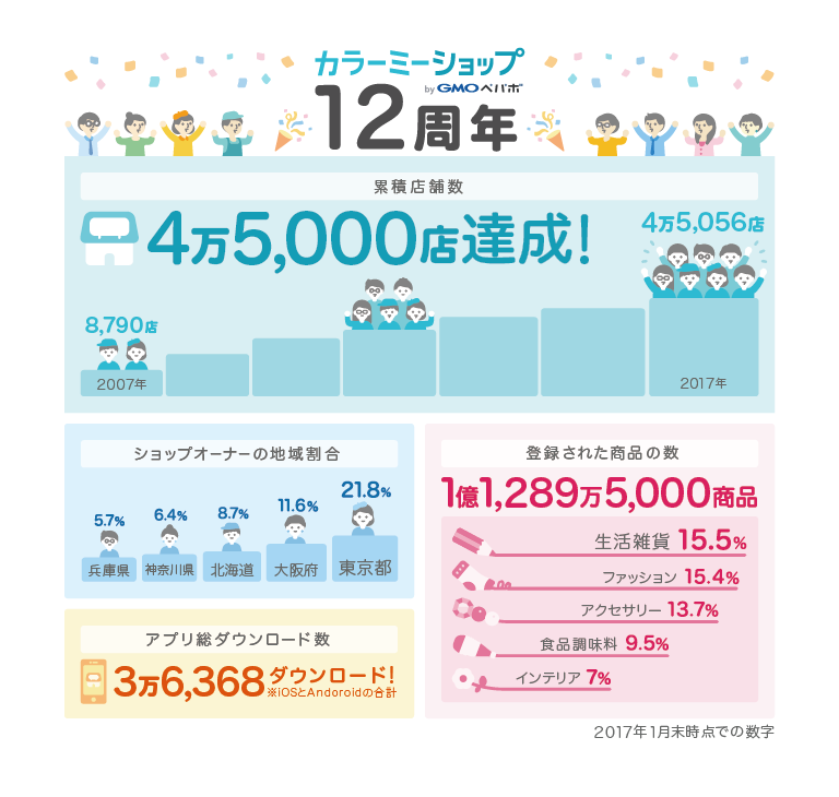 サービス開始から12周年を迎え、2月1日に累計店舗数が4万5000店、アプリのダウンロード数が3万6000件を突破した。