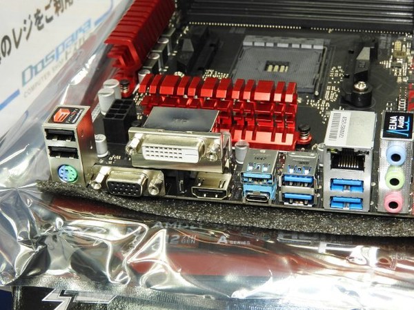 オンボードインターフェースとして、ギガビットLAN(Realtek RTL8111GR)やサウンド(Creative SoundBlaster Cinema 3)、M.2×2、SATA3.0×6、USB 3.0×8、USB 2.0×6などを装備。グラフィックス機能にHDMI1.4×1、DVI-D×1、D-Sub×1を搭載。