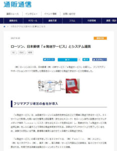 日本郵便(株)は29日、フリマアプリなどと連携して送り状を発行するサービス「e発送サービス」のシステム連携に障害が28日に発生し、「ローソン」店舗のLoppiで送り状が発送できない状況になっていると発表した。
