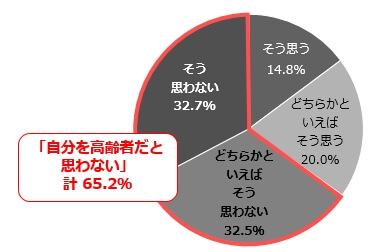 同調査によると、「自分が『敬老の日』に祝われる年齢か」という問いに対し、34.5%が「そう思う」、23.7%が「どちらかといえばそう思う」と回答。それに対し、60歳以上の約4割、70歳以上の2割の人は「自分が敬老の日に祝われる対象だと思っていない」と回答している。