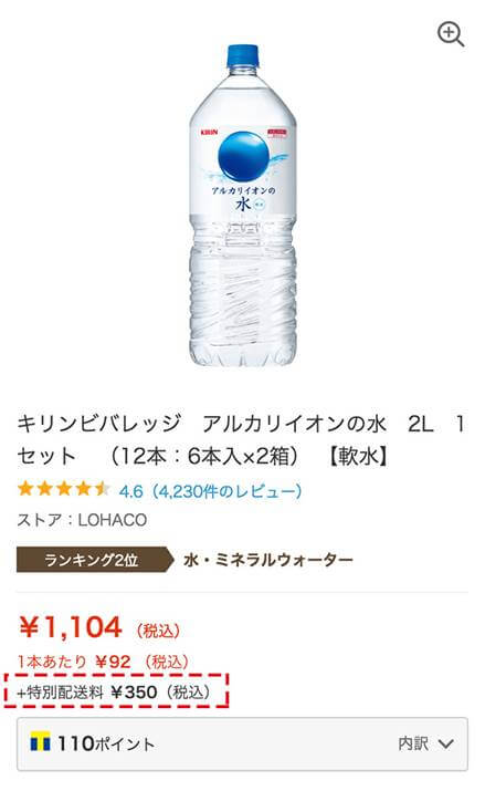 「LOHACO」の配送サービスの変更点は、一部の900ml以上の飲料ケース品(ミネラルウォーターなど)約80商品を対象に、350円(同)の「特別配送料」を設定する。また、離島(沖縄本島を除く)への配送にも、350円(同)の「離島配送料」を追加する。