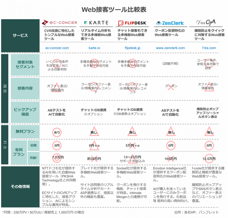 WEB接客ツール各社の比較 …市場は2社に絞られた