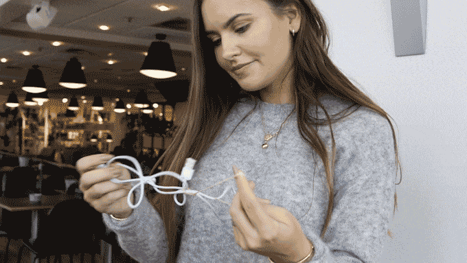 ステップ2:ケーブルをスリットに通します。 USB側にループをスライドさせます。 ケーブルを5回折り返します。ボタンで閉じます。
