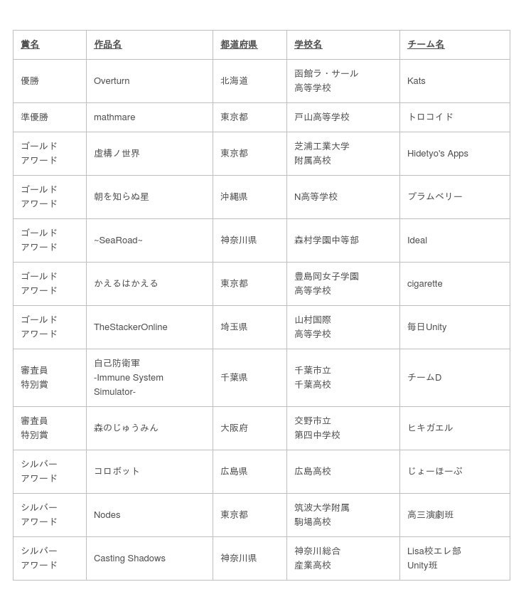 『Unityインターハイ2019』最終結果発表