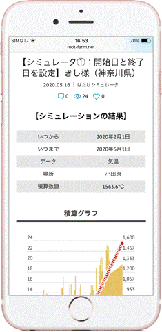 データ表示・積算シミュレータ・積算気温の予測・通知の三機能を提供しています。