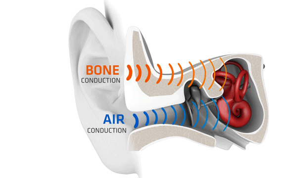 私たちが「音」として聴いているのは「空気の振動で伝わる気導音」と「骨を通して伝わる骨導音」の2種類がありますが、最終的に振動を音としてとらえるのは、内耳にある聴覚神経です。OpenCommは「骨を通して伝わる骨導音」を利用しているため、耳を塞ぎません。そのため、自動車が近づく音や駅のアナウンスを聞き逃すこともなく、ジョギングや散歩、通勤中でも安心してご利用いただけます。