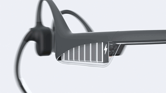 OpenCommの充電ポートは、AfterShokz Aeropexと同じマグネット式。ケーブルを近づけるだけで自然にポートと接合します。もしも、雨や汗などでポート部分が濡れている場合は、警告音が鳴って充電異常をお知らせするため、事故を防ぐことができます。