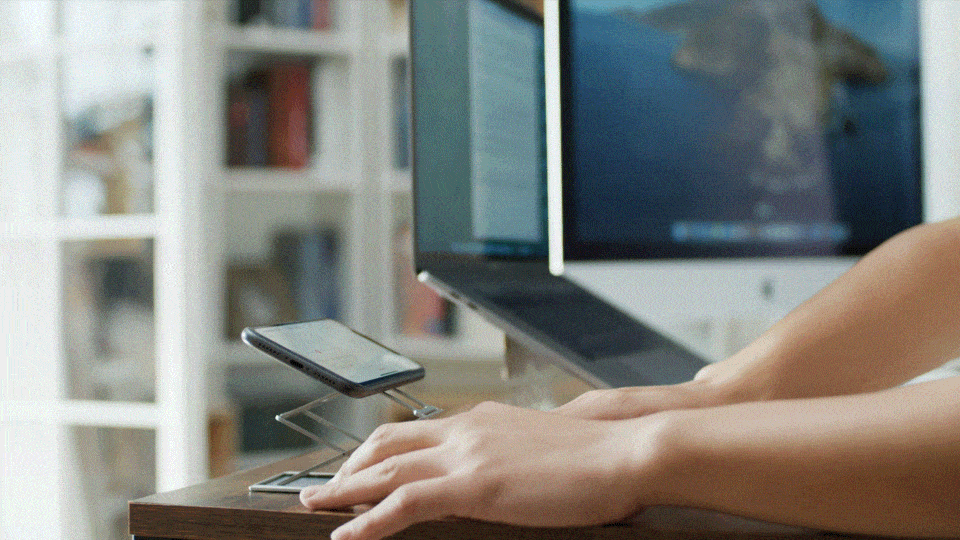 パソコンでの作業中に視線を大きく下げてスマートフォンの画面を表示する他のスマートフォンスタンドとは異なり、Majextand Mは完全に拡張すると最大12cm上昇し(スマートフォンが横向きの場合)、スマートフォンやタブレットをお使いのパソコンの画面の高さまで持ち上げます。 この巧妙な設計により、シームレスなマルチタスクが可能になり、作業ルーティンが最適化されます。