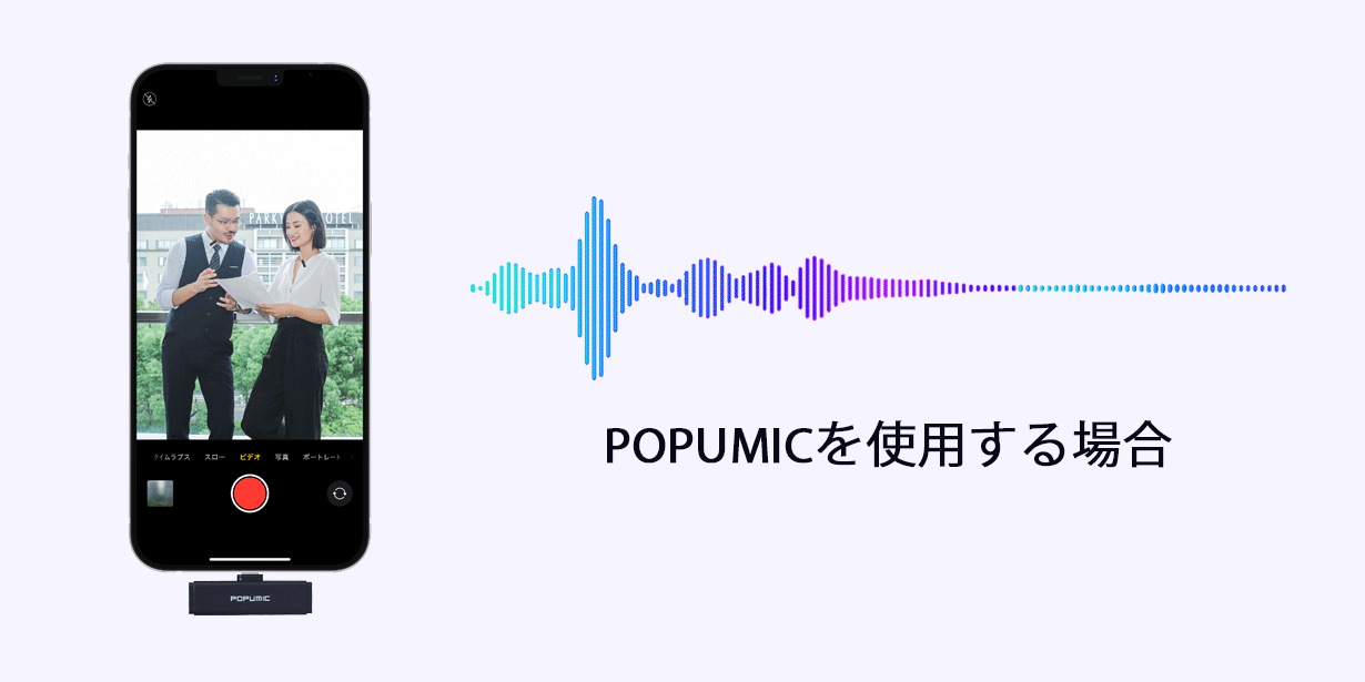 POPUMIC(ポピュマイク)は、iPhone&アンドロイドスマホ(Type-C)又はタブレット、デジカメなどでの動画撮影や録音(ボイスメモ)の時に高音質な音声を完全ワイヤレスに集音できるワイヤレスマイクです。