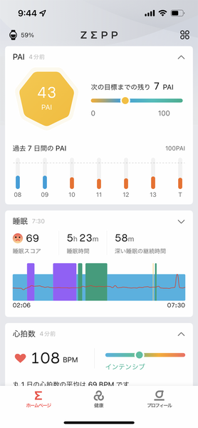 Amazfitのスマートウォッチは独自のZepp OSを採用し、iPhoneとAndroidのどちらにも対応。筆者はiPhone 13 Proと接続させて使いました。ペアリングや各種設定は「Zepp」アプリだけでできます。スマートウォッチ向けアプリとしては、わかりやすいメニュー構成で、設定したい項目が見当たらないといったことはなかったです。