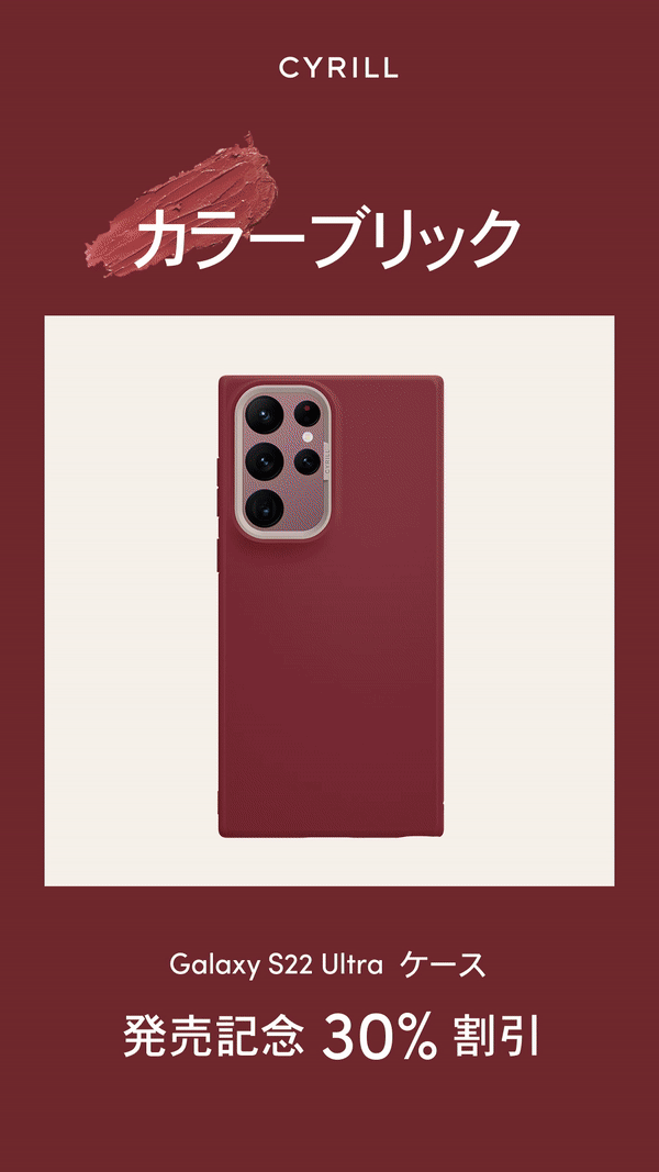 Spigenの姉妹ブランドCyrill(シリル)がgalaxy S22シリーズ製品の発売を記念してカラーブリックとフレッシュな花柄ケース商品に対して30%割引を期間限定で行います。