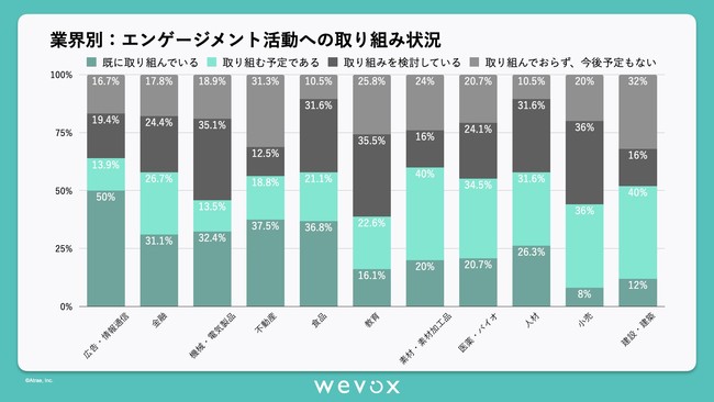 エンゲージメント向上への取り組み状況も、業界間で違いが大きいことがわかります。