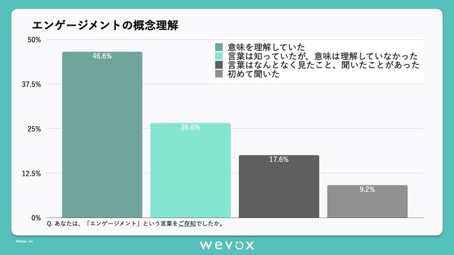 今回Wevoxでは、エンゲージメント向上を支援するリーディングカンパニーとして、国内企業におけるエンゲージメントという概念の浸透度及び、エンゲージメント向上活動への取り組み状況を調査いたしました。