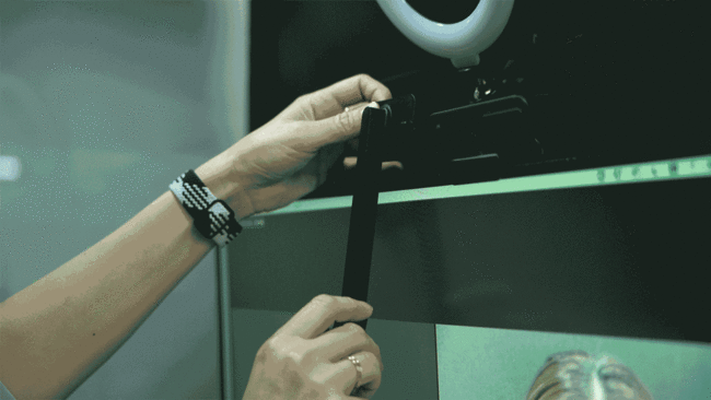 クリップで画面上部のフレーム部分を挟み込んでカメラを固定し、あとは付属のUSBケーブルでパソコンに接続するだけです。カメラは一度固定すれば、時間が経ってもズレる心配はありません。使わない時は毎回クリップを外さなくても、 カメラにつながっている棒の部分を上にスライドするだけで、画面からカメラを除けることができます。