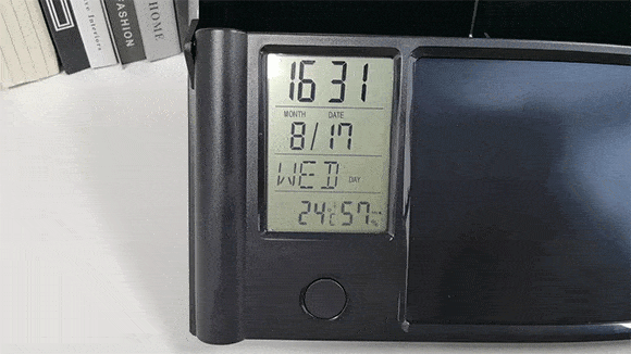 ・時刻、日付、温度、湿度表示付き。目覚まし時計としても使用可能