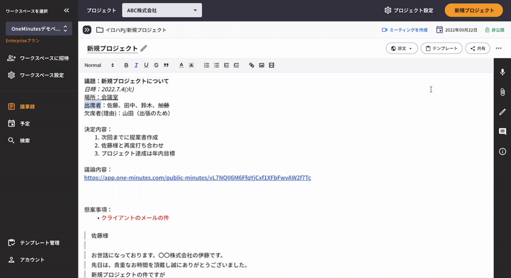 グローバルプロジェクト向け議事録DXツール『One Minutes』、ドキュメント本文の多言語翻訳が対応可能に!