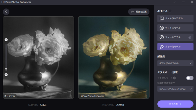 HitPaw Photo EnhancerはPCユーザー向けの高品質の画像高画質ツールです。写真の質を損なうことなく解像度を上げて、画質を良くさせます。