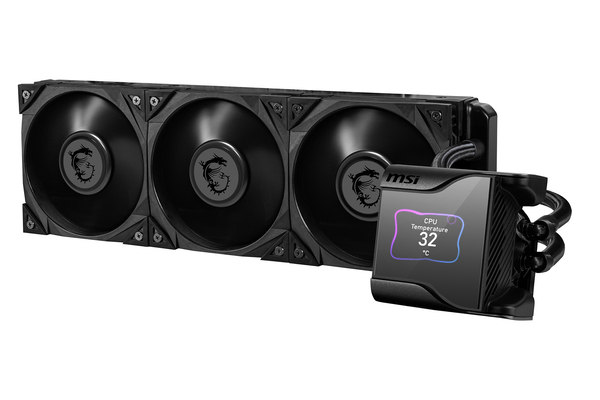 価格が2万円前後アップするが、MSIのハイエンド水冷ユニット「MEG CORELIQUID S360」もおすすめとのこと。2.4型IPS液晶や、VRMファン、3基の「MEG SILENT GALE P12」を搭載する