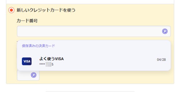 Webサイトでカード情報の入力が必要な場合、すぐに選択して自動入力できる