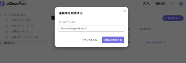しかし「連絡先」に登録した特定のユーザーとなら「共有」することもできる。連絡先に登録できるのは、ユーザーが招待した相手だけで、なおかつその相手が「pCloud Pass」のアカウントを持っていて、その招待を「承諾」することが必要となる。