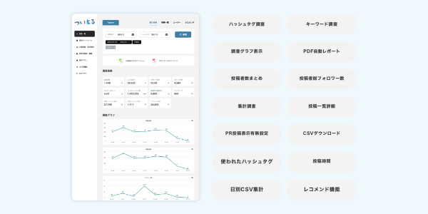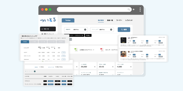 ツイとるは利用企業社数1000社以上のSNS効果測定サービス「hashtout」を元にTwitterのみに特化させた、調査サービスとなっています。キャンペーンや、競合他社調査、市場調査などマーケティングには欠かせない数値を分かりやすい管理画面で誰でも簡単に使用可能なツールを提供します。