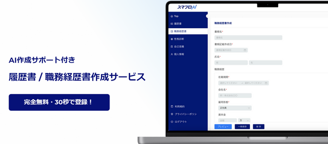 「スマプロAI」提供開始(AIが履歴書/職務経歴書作成を完全無料でサポート)