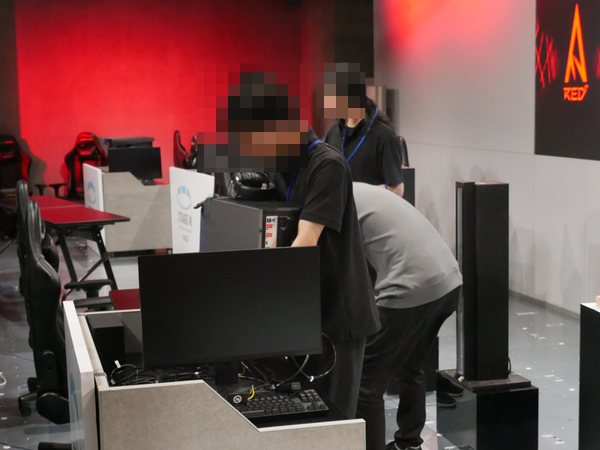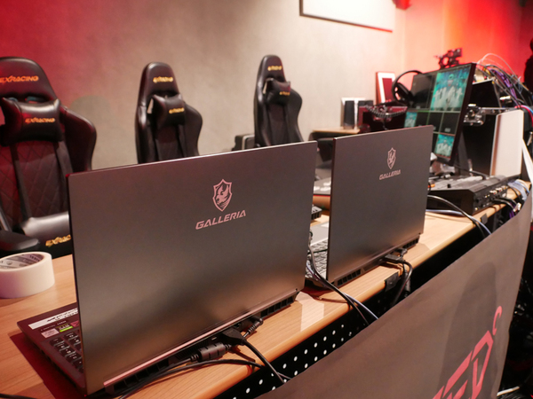選手の席は、普段PCゲーム環境がズラリと並ぶブースを使用していました。ここで普段使用されているのは、ゲーミングパソコンのGALLERIA(ガレリア)です。もともとゲームが超快適に楽しめるブースなので、ゲーム性能はいうまでもありません。そのパソコンを大会でも採用していたため、ゲームの大会の環境としても最適といえるでしょう。