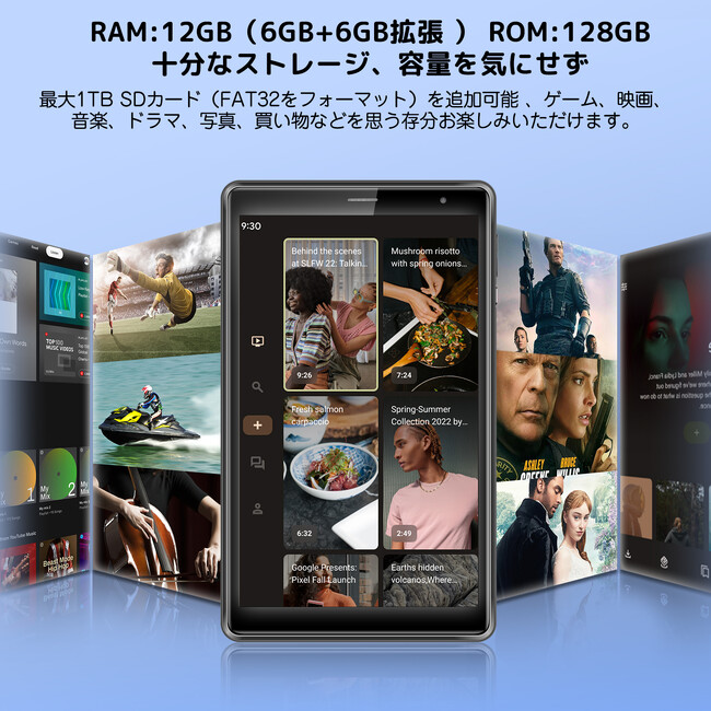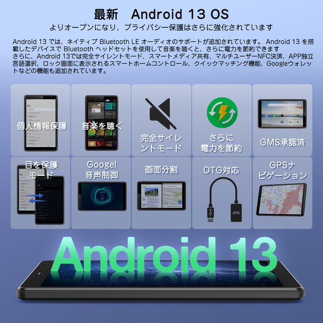 Android 13/Widevine L1対応/FHD 1920x1200IPS/ 12GB(6+6拡張) RAM/128GB ROM /8コアCPU T606/顔認識/GPS機能