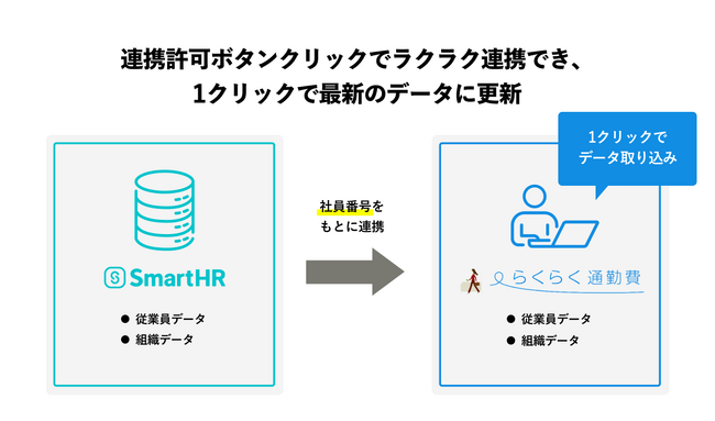 さらに、「SmartHR」のIDとパスワードを利用して「らくらく通勤費」にログインし、サービスをご利用いただけるSSO連携を開始しました。これによって、「SmartHR」にログインしているユーザーは、1クリックで「らくらく通勤費」にログインしてサービスが利用できます。