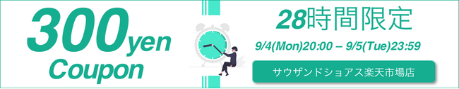 また同時に4,000円以上お買い上げの場合に利用できる、28時間限定300円OFFクーポンを配布いたします。