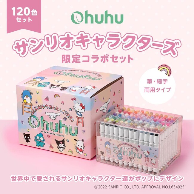 世界15ヵ国以上で展開し、プロのアーティストからも支持されるOhuhuイラストマーカーと、世界中で愛されるサンリオキャラクターズとの限定コラボセットです。特別仕様のデザインでプレゼントとしてもおすすめです。