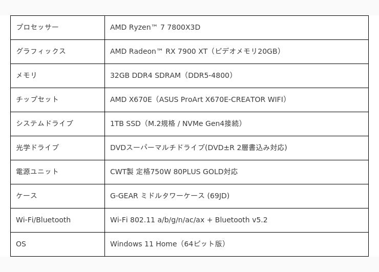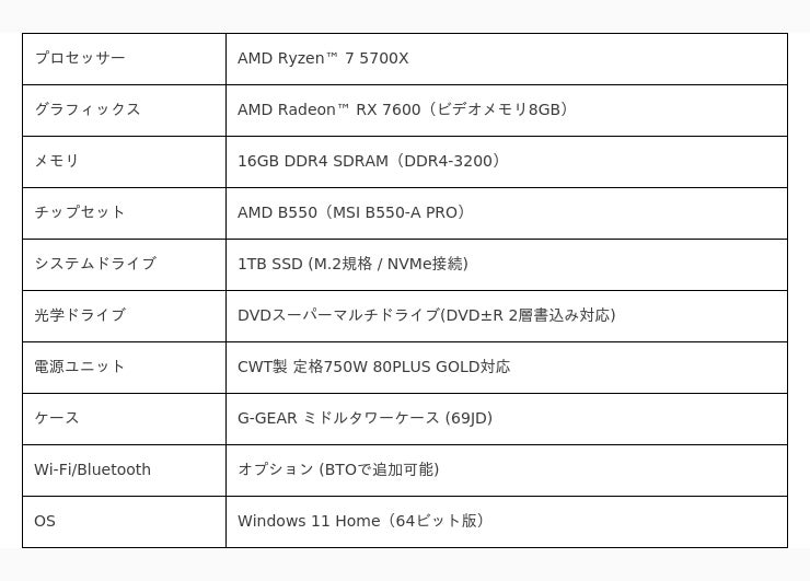 ※受注生産方式(BTO)によりスペックはカスタマイズすることが可能です。