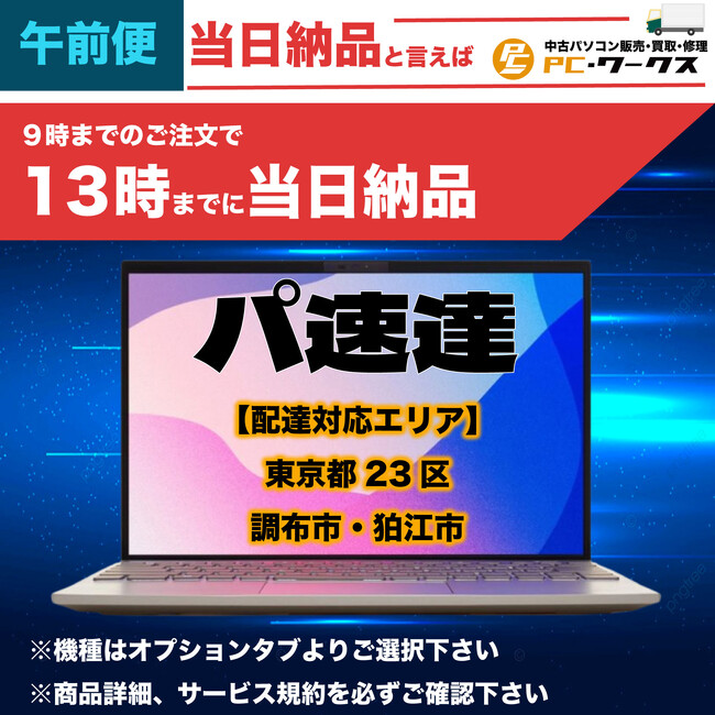9時までのご注文をいただいた場合、当日13:00までに中古パソコンをお届けする午前便