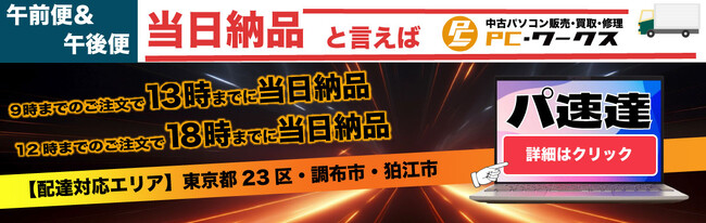 TMRワークス株式会社が運営している、中古パソコン専門店(販売、買取、修理)PC・ワークス(本社:狛江市/代表:前埜 隆広)はパソコンの注文を受けてから当日注文・当日配送サービスの【パ速達】を2023年9月1日(金)より販売を開始いたします。