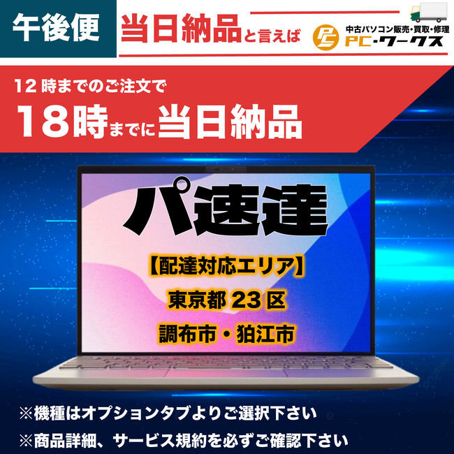 12時までのご注文をいただいた場合、当日18:00までに中古パソコンをお届けする午後便