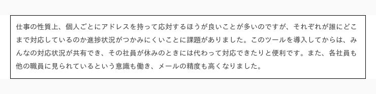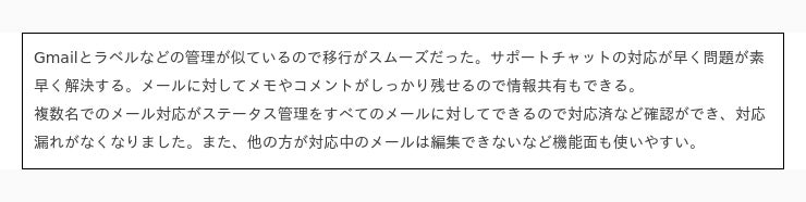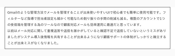 今回の「BOXIL SaaS AWARD Autumn 2023」は、2022年7月1日から2023年6月30日までの1年間で新たに投稿された口コミ約17,000件を審査対象としています。今回「Re:lation」が受賞したメール共有・問合せ管理システム部門の「Good Service」は、「BOXIL SaaS」上に投稿された口コミを対象に、各カテゴリで総得点の高いサービスに対して付与されるものです。