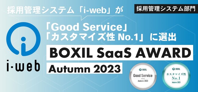 採用管理システム『i-web』、「BOXIL SaaS AWARD Autumn 2023」採用管理システム(ATS)部門で「Good Service」「カスタマイズ性No.1」をダブル受賞!