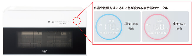 ・水温や乾燥方式に応じて表示部サークルの色が変わるユニークなデザイン