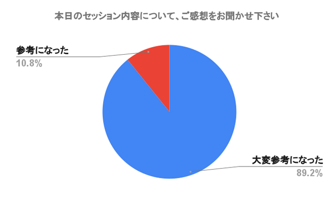 ウェビナー参加者92名のうち、アンケート回答者は65名。「参考になった」「大変参考になった」を合わせると、ウェビナー参加への満足度は100%だった。