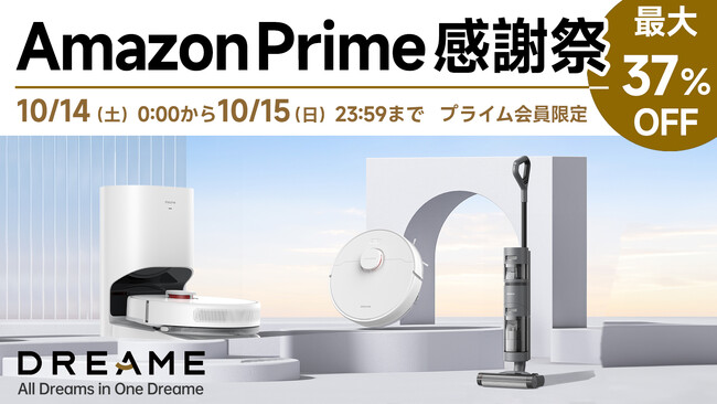 「プライム感謝祭」は、Amazonプライム会員のお客様に向けた新たなセールイベントで、日本での開催は今回が初めてとなります。皆様の日頃のご支援に感謝するために、ドリーミーテクノロジージャパン公式Amazonストアでは、今回のAmazon「プライム感謝祭」にて人気製品を最大 37%OFFで販売いたします。それ以外にも、感謝祭期間中、Dreameは5way全自動クリーニングステーション付き最高峰ロボット掃除機DreameBot L20 Ultra Completeの発売を記念して、Dreameの公式SNS(X/旧Twitter(@dreamejapan)、Instagram(@dreametech_japan))で「新発売プレゼント・キャンペーン」を実施します。お得なチャンスをお見逃しなく!